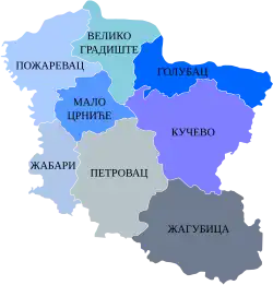 The Braničevo District encompasses the territories of one city and seven municipalities: