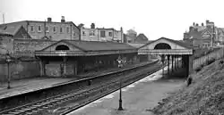 The London and South Western Railway (LSWR) opened its line from Bournemouth to Poole in 1874,[1] but the station was not opened until 1 June 1893.[2] The S&DJR opened a locomotive depot at the station in 1895 which operated until closure of the line into Bournemouth West in 1965,[3] after which the S&D trains ran, for the remaining few months of operation, into Bournemouth Central railway station, which had its own locomotive shed.[4]