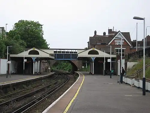 Branksome railway station serves the Branksome and Branksome Park areas of Poole in Dorset, England. It is on the South West Main Line, 110 miles 51 chains (178.1 km) down the line from London Waterloo.