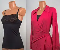 Madonna was one of the first to start showing her bra straps, in the late 1980s.[126] A corset she wore as outerwear during her 1990 Blond Ambition World Tour sold for US$52,000 in 2012 at the Christie's Pop Culture auction in London.[127] Versace's autumn 2013 couture collection featured fashions that were open in the front, revealing underwire bras.[128] It became fashionable from the early 1990s to wear clothing that showed bra straps.[129][130][131][132]