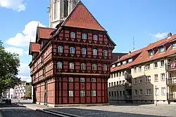 The Allied air raid on October 15, 1944, destroyed most of the city's churches, and the Altstadt (old town), the largest homogeneous ensemble of half-timbered houses in Germany.[54] 100 out of 800 half-timbered houses survived as well as the most important places and streets, preserved in 5 areas of the old town.[55][56]