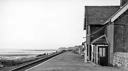 The Whitehaven and Furness Junction Railway was authorised in 1847 for a line which would link the town of Whitehaven with the Furness Railway at Broughton-in-Furness.[2] It was opened in stages, and the first section, that between Whitehaven and Ravenglass opened either on 1 June 1849[3] or on 21 July 1849.[4] The station was host to four LMS caravans from 1937 to 1939.[5]