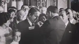 Brazil had US$338 million in American loans already negotiated, but not yet delivered. With bureaucratic justifications, this credit was effectively frozen after the inauguration. Dean Rusk conditioned its release on Brazil's commitment to the goals negotiated by Jânio with the IMF.[100] This impediment did not last long, and by April 1962 $224 million that had been negotiated under the previous government was released.[101] The release was little by little and, when possible, at short notice.[102] The pressure exerted by Minister of Finance Walter Moreira Salles,[103] Kennedy's desire not to give the impression of being a deal breaker,[101] Goulart's weakened position within the parliamentary system, his political moderation and the importance of Brazil explain the continuity of American support at the beginning of his government.[104]