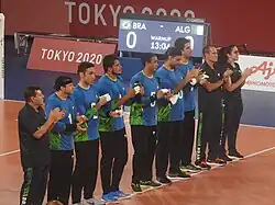 ![]() Brazil men's goalball team. Makuhari Messe arena, 2020 Paralympic Games, Chiba, Tokyo, Japan (Aug 2021). | |