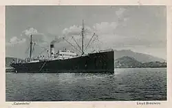By 1919, Cabedello was registered in Rio de Janeiro.[13] By 1920, the Government of France had chartered her.[14] Companhia de Navegação Lloyd Brasileiro was managing her by 1923,[15] and owned her by 1927.[16] By 1934, her four-letter call sign was PUAN, and this had superseded her code letters.[17]