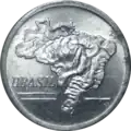 Cr$10 | 23 mm | 1965 | Portrays a relief map of Brazil |