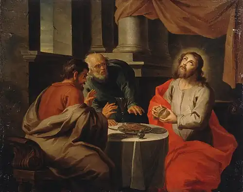 In the Christian ritual of the Eucharist, bread is eaten as a sacrament either as a symbolic representation of the body of Christ or, as in the Catholic liturgy, as a real manifestation of the body of Christ.[28] Specific aspects of the ritual itself, including the composition of the bread, vary from denomination to denomination. The differences in the practice of the Eucharist stem from different descriptions and depictions of the Last Supper which provides the scriptural basis for the Eucharist.[29] The Synoptic Gospels present the Last Supper as a Passover meal and suggest that the bread at the Last Supper would be unleavened. However, in the chronology in Gospel of John, the Last Supper occurred the day before Passover suggesting that the bread would be leavened. Despite this point of disagreement, the Council of Florence of the Catholic church agreed that "the body of Christ is truly confected in both unleavened and leavened wheat bread, and priests should confect the body of Christ in either".[30]