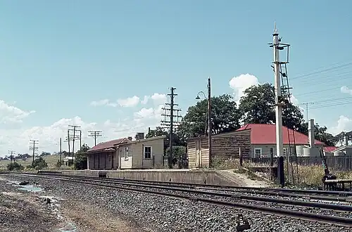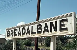 Breadalbane railway station was a railway station on the Main Southern railway line, serving the village of Breadalbane in New South Wales, Australia at Breadalbane, New South Wales. It opened on 5 November 1875 as Bredalbane, and was respelt on 4 April 1876 as Breadalbane. The station served passengers until 25 August 1974.[2] It was later completely demolished and little trace of the station now survives.