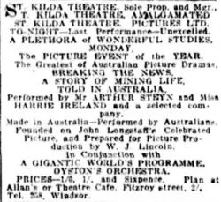 - ^ "St. Kilda Theatre". The Prahran Telegraph. Vol. 50, no. 2632. Victoria, Australia. 30 March 1912. p. 6. Retrieved 6 June 2024 – via National Library of Australia. - another synopsis