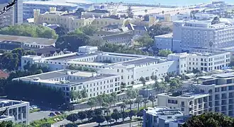 ![]() Breakwater Lodge in 2010. The square turreted building in the centre is the old prison. Taken from Signal Hill | |
