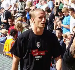 During the summer of 2007 newspapers linked him with Premier League clubs Newcastle United, Liverpool, Aston Villa and Manchester City.[7] Hangeland refuted the rumours and said he was glad to play for Copenhagen, but finally on 18 January 2008 after days of speculation, it was officially confirmed that he had signed for Fulham, where he was reunited with his former manager from Viking, Roy Hodgson, and former Viking FK striker Erik Nevland.[8]