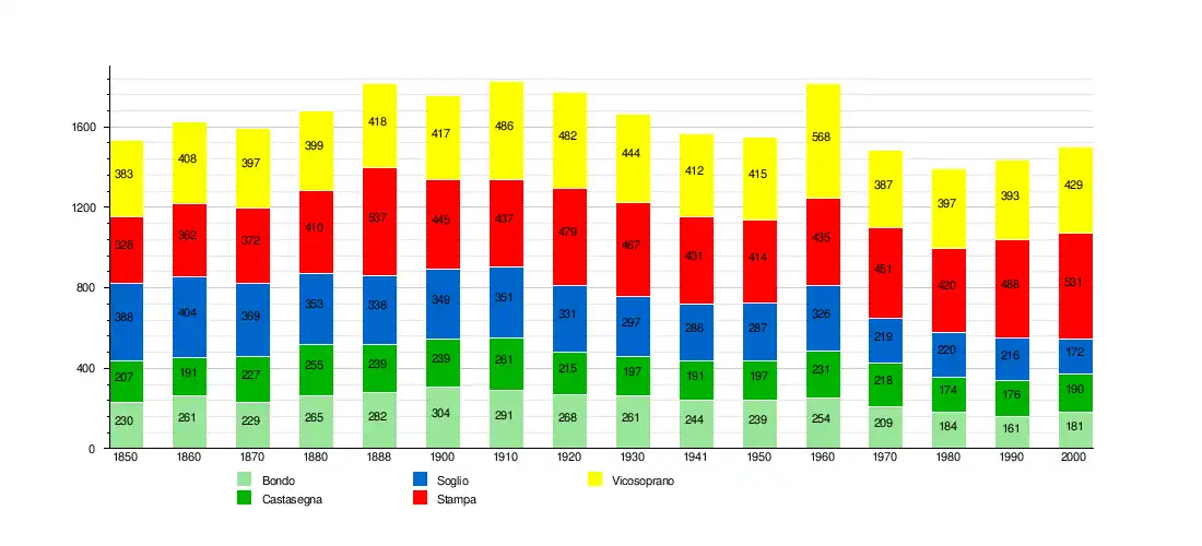 | Localities | Bondo, Ca d'Farett, Castasegna, Muntac, Roticcio, Soglio, Spino, Stampa and Vicosoprano |