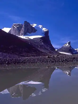 ![]() Breidablik and Thor Peaks, Auyuittuq N. P. | |