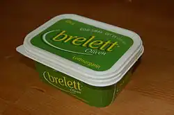 Brelett is a Norwegian brand of margarine produced by Fjordland. It has a market share of 72% in the domestic light margarine category. The margarine contains both milk and vegetable fats, giving it a more buttery taste than pure margarine. In 2006, 10,347,395 packages of Brelett were sold.[1]