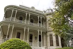 The Bremond Block Historic District was added to National Register of Historic Places in 1970, and is considered one of the few remaining upper-class Victorian neighborhoods of the middle to late nineteenth century in Texas.[2] Six of these houses were built or expanded for members of the families of brothers Eugene and John Bremond, who were prominent in late-nineteenth-century Austin social, merchandising, and banking circles. They are located within the square block bordered by West Seventh, West Eighth, Guadalupe, and San Antonio streets. The district also includes several houses on the west side of San Antonio and the south side of West Seventh, at least three of which were built or altered by the North family.[3] The John and Pierre Bremond houses are currently owned by the Texas Classroom Teachers Association, and the John Bremond house serves as the headquarters for the association. TCTA website