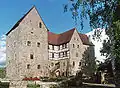 In 1642, a Franz Günther, a simple farmer's son from Kützberg by Schweinfurt, was ennobled with the family name “Günther von Brennhausen” and given the fief of Brennhausen from the Bishopric of Würzburg. From 1635 to 1647, Franz was the Commandant of the fortress at Königshofen. Franz’ son Hans, also a distinguished military man, received Brennhausen. Hans and his second wife Felicitas Agnes Leschin von Mülheim coat of arms are in the courtyard. The transfer to their minor son, Johann Georg Hartmann Günther von Brennhausen, upon Hans' death was held up in court in part due to Felicitas Agnes being Protestant. The 1675 case was eventually won in 1679 and invested in 1680, only to have Johann Georg Hartmann pass away in 1681.