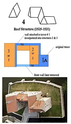 Both documentation and physical evidence strongly suggest that Brennhausen burned in 1525 during the Bauernkrieg or Peasants (or Farmers) Revolt. The beams of the roof and the entrance to one of the cellars date from right after 1525. Stone work also suggests that the floor levels changed at some point. Also G.P. Höhn in his 1747 Lexicon Topographicum states that the peasants set fire to it in 1525.