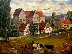In past centuries there were more houses at Brennhausen. Anton Rottmayer in Statistisch-topographisches handbuch für den Unter-Mainkreis des königreichs Bayern published in 1830 describes Brennhausen as having: one castle, seven residences, one mill with two mill stones, ten families, 56 residents, 22 Catholics, 34 Protestants with the Protestants going to Sulzdorf for church and school and the Catholics going to Obereßfeld. In 1832, Johann Wilhelm Rost, described fifty-one inhabitants in twelve families lived at Brennhausen. Ten of them were Catholic, thirty-six Lutheran, and five Jewish. The Catholics went to church in Untereßfeld and the Lutherans in Sulzdorf. Until 1848, Brennhausen had original jurisdiction over its own affairs. In 1915 (WWI), Brennhausen had six residences besides the castle but only two were inhabited. The other four were dilapidated.