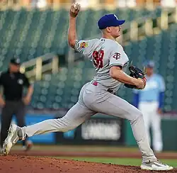 On November 15, 2022, the Twins added Headrick to their 40-man roster to protect him from the Rule 5 draft.[6] Headrick was optioned to the Triple-A St. Paul Saints to begin the 2023 season.[7] On April 16, 2023, Headrick was recalled and promoted to the major leagues for the first time.[8] He made his MLB debut on April 19, earning the save.[9] In 14 games for Minnesota, Headrick posted a 6.31 ERA with 30 strikeouts across 25+2⁄3 innings pitched.