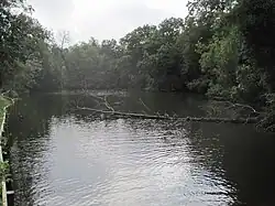 The River Brent runs along the western edge, and there are three ponds next to the river. These are the remains of a lake built possibly as long as a thousand years ago by the abbots of Westminster as a duck decoy.[1] Tufted ducks, mallards, coots and moorhens still nest on a wooded island on one of the ponds.[2]