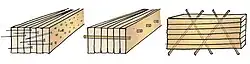 Brettstapel, also known as dowellam,[1] is a massive timber construction system, fabricated exclusively from softwood timber posts connected with hardwood timber dowels. It is a relatively simple method of construction that exploits low grade timber, not normally suitable for use in construction, to form load bearing solid timber wall, floor and roof panels.