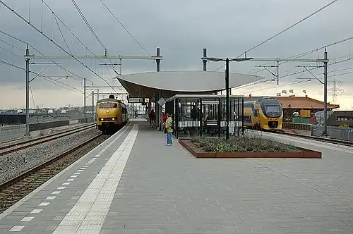 Breukelen is a railway station located in Breukelen, Netherlands. The station was opened on 18 December 1843 and is on the Amsterdam–Arnhem railway. It is also the northern end of the Harmelen–Breukelen railway.[1] A new station was opened in 2002 nearer the A2 motorway and further from the town. For this the junction with the line to Harmelen and Woerden also moved.