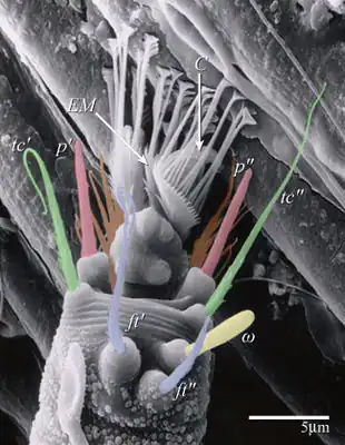 - ^ Rodrigues, Jose Carlos Verle; Childers, Carl C. (2013). "Brevipalpus mites (Acari: Tenuipalpidae): Vectors of invasive, non-systemic cytoplasmic and nuclear viruses in plants" (PDF). Experimental and Applied Acarology. 59 (1–2): 165–175. doi:10.1007/s10493-012-9632-z. PMC 3545198. PMID 23203501.