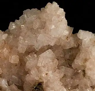 Brewsterite is the name of a series of tectosilicate minerals of the zeolite group. Prior to 1997, brewsterite was recognized as a mineral species, but a reclassification in 1997 by the International Mineralogical Association changed it to a series name, with the mineral species being named brewsterite-Sr and brewsterite-Ba. Brewsterite-Sr, the more common of these, is a hydrous strontium and aluminium silicate, (Sr,Ba)2Al4Si12O32·10H2O. Small amounts of barium is usually present replacing part of the strontium. The appropriate species name depends on the dominant element. The species are visually indistinguishable, and the series name brewsterite is still used whenever testing has not been performed.