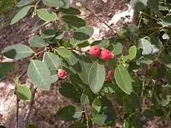 This native shrub may be confused with Senna species which are found in similar habitats, but Senna has pinnate leaves (leaf is divided into separate leaflets and a petiole) unlike the simple leaves of B. oblongifolia, and Senna produces conspicuous yellow flowers followed by leguminous pods in contrast to the inconspicuous flowers and red berries of B. oblongifolia.