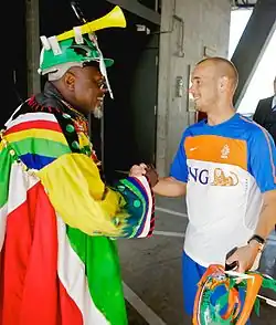 ![]() Baloyi shaking hands with Wesley Sneijder in 2010 | |||