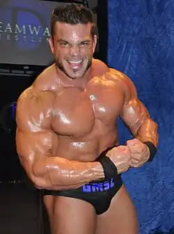 Brian Christopher Joseph Button[1][2] (born February 2, 1984), better known by the ring name Brian Cage, is an American professional wrestler and bodybuilder. He is signed to All Elite Wrestling (AEW), where he is a member of The Don Callis Family and one-half of The Murder Machines with Lance Archer. He is currently out of action due to a torn quadriceps tendon. Button is a former one-time FTW Champion. He also performs in AEW's sister promotion Ring of Honor (ROH), where he is a former ROH World Television Champion and a former two-time ROH World Six-Man Tag Team Champion. He also competes on the independent circuit.