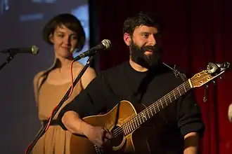 Also in 2006 Campeau formed a bluegrass band, Green Mohair Suits, in Sydney with Richie Cuthbert (Cuthbert & the Nightwalkers), Jason Mannell and Ben Romalis as a tribute to Gram Parsons.[2] By 2010 they were joined by Mikey Floyd and Elana Stone.[3] The group have issued four studio albums, Sing Songs from the Heathen Hymnbook (2009),[3] Green (2012), Wooden Duck (2014) and Evans St (2016). theMusic.com.au's Chris Familton provided a review of the six-piece's performance in July 2015, showcasing "quiet, lilting songs or the brisk, brittle bluegrass workouts."[4]