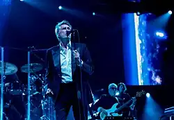 In 2014, Ferry toured extensively, with notable performances including Coachella Valley Music and Arts Festival, as well as an appearance at the Chicago Theatre, which was preceded by a talk with author Michael Bracewell at the Museum of Contemporary Art on the subjects of fame and his creative inspiration.[47][48][49] Also in 2014, Ferry collaborated with the Norwegian DJ/producer Todd Terje, providing vocals on a cover version of "Johnny and Mary" (originally recorded by Robert Palmer). The track was released as a single and appeared on Terje's album It's Album Time.[50] In June 2014, Ferry appeared at the Glastonbury Festival,[51] and in 2015 he returned to Coachella to perform as a guest artist with Terje.[52]