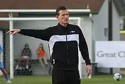 After retiring, Irvine stayed with County as a coach, taking his first managerial job in January 2006 with Elgin City.[12] In December that year, with the club bottom of the table, Irvine left the club.[13][2] In March 2009, Irvine was named assistant manager to Martin Rennie of USL First Division side Carolina RailHawks FC. He was previously Rennie's assistant at USL-2 side Cleveland City Stars.[2]