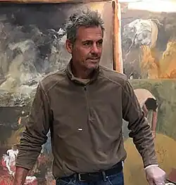O'Connor's paintings have been described as socio-political narratives.[4] His work renders figurative subjects within enigmatic situations.[5] O'Connor has described his work as "the beautiful mess" of "grappling with the world" and attempting to make sense of it.[3] The art writer, Diane Armitage wrote of O'Connor's work, “O’Connor is a gifted realist painter whose increasingly dark vision continues to expand as he adds to his narrative of millennial observations...what O’Connor does in his work is pose questions about our complicity with the forces of degradation that seem to increasingly govern our fate.”[6] He has exhibited his work nationally in museums and galleries[2][7] including the Albuquerque Museum, the Harwood Museum, the New Mexico Museum of Fine Arts, the San Antonio Museum of Art, the Riverside Museum of Art among other venues.[8]