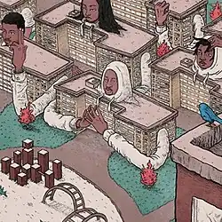 Brick Body Kids Still Daydream is the sixth studio album by Open Mike Eagle. It was released via Mello Music Group on September 15, 2017.[1] It includes guest appearances from Sammus and Has-Lo.[2] It is a concept album about the Robert Taylor Homes, a public housing project in Chicago, Illinois.[3] The cover art was illustrated by McKay Felt.[4] Music videos were created for "95 Radios",[5] "Brick Body Complex",[6] "No Selling (Uncle Butch Pretending It Don't Hurt)",[7] "Happy Wasteland Day",[8] and "Hymnal".[9] The album received widespread acclaim from critics and landed on several year-end lists.