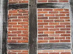 The technique was developed in England from the late 1400s to early 1500s, developing out of methods such as wattle and daub and lath and plaster construction, with the bricks being laid in horizontal courses or a herringbone pattern.