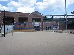 Bricktown Beach is an artificial beach temporarily installed annually in Bricktown, Oklahoma City, in the U.S. state of Oklahoma. The summer attraction, which features beach sand, lounge chairs and umbrellas, and equipment for volleyball and other games, is installed at Third Base Plaza outside Chickasaw Bricktown Ballpark.[1] Approximately 150 tons of sand is used to create the beach each year.[2][3] The beach was first installed in 2016.