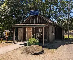 Bridal Veil was established in 1886. Bridal Veil functioned as the Bridal Veil Falls Lumbering Company and built a sawmill one mile (1.6 km) up Larch Mountain. The company operated in Bridal Veil and the surrounding area from 1886 to 1936. A mile and half up the timber-rich mountain was the logging town of Palmer. Palmer and Bridal Veil shared common ownership as company mill towns. Together, the two towns produced lumber and were codependent. A V-shaped log flume was built for the rough cut timber to get down the mountain to the planing mill at the railroad tracks in Bridal Veil.[2] After the timber was logged on the mountain, they were brought to the sawmill in Palmer. As the rough-cut lumber exited Palmer's mill it traveled down the flume the mile and a half to the finishing mill in Bridal Veil. The dependency between the two towns ended in 1936 when the mill at Palmer was shut down.[3]