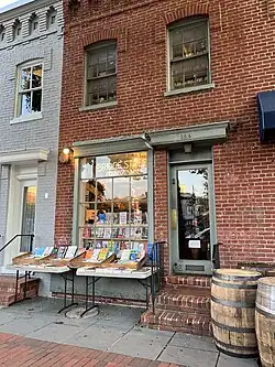 The independent bookstore Bridge Street Books operates in Georgetown, Washington, D.C. The exterior has a neon sign.[1] The interior has artwork and photographs of the Chesterfield Nationals.[2] The shop has books about cultural studies, philosophy, poetry, and politics.[3] Washingtonian has described the shop as "a collection spilling out onto the sidewalk."[4] Fodor's has called the shop "charming".[5][6] Another guide book says the shop has a "lovely ambiance".[7]
