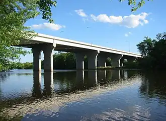 The Bridge of Hope is a concrete girder bridge that spans the Mississippi River between Sartell, Minnesota and Sauk Rapids, Minnesota. The bridge was completed eight months early, aided by favorable weather and trouble-free construction. It was built in 1995 and was designed by Minnesota Department of Transportation and the Jim Hill Group.