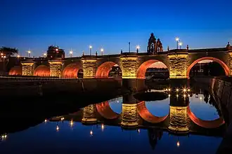 The Bridge of Toledo (Spanish: Puente de Toledo) is a bridge located in Madrid, Spain.[1] It was built in a Baroque style between 1718 and 1732 by architect Pedro de Ribera and spans the Manzanares River, linking the Pyramids roundabout on the east bank with Marqués de Vadillo Square on the west bank.