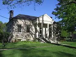In 1904, the Bridgewater Library Association was established, succeeding previous lending libraries operated by individuals in town. In 1909 room for library purposes was set aside in recently built town hall. A bequest from William Dixon Burnham, a native who made his fortune in shipping, allowed a Greek Revival style building to be erected from 1925 to 1926, using Mine Hill granite from nearby Roxbury. The dedication took place on August 26, 1926.[14]