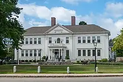 Bridgewater was formerly governed on the local level by the open town meeting form of government, led by a Board of Selectmen until January 2011. Bridgewater is now led by three District Councilors, 1 per district, and six Councilors-at-large, with an appointed Town Manager, Assessor, Tax Collector, for a total of nine Councilors.[20] Bridgewater is one of fourteen Massachusetts municipalities that have applied for, and been granted, city forms of government but wish to retain "The town of" in their official names.[21] This is from the majority 'Yes' vote on Question #1 at the April 24, 2010 annual town election, to change from a five-person, elected Board of Selectmen to a nine-person, elected Town Council, and thus abolishing the Annual Town Meeting, which was held in 2010 after generations.[20][22] Town facilities are located at the center of town, with the Police Department headquarters being just west of the Square along Mass. Route 104. There are two fire stations located in town, with one station located next to the college and the other station in the eastern part of town, directly behind the Town Hall. There is one U.S. Post Office branch, located just north of the town center along Mass. Route 18.