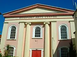 Bridport has a history of nonconformism; a Dissenters' Academy was built in the town in 1768, and by 1865 the single Anglican church, St Mary's, was outnumbered by non-Church-of-England establishments by seven to one.[46] The Wesleyan chapel on South Street, now the Bridport Arts Centre, is a Grade II listed building; it was erected in 1838, designed by James Wilson of Bath, Somerset, and built by Charles and Joseph Galpin of Bridport.[65]