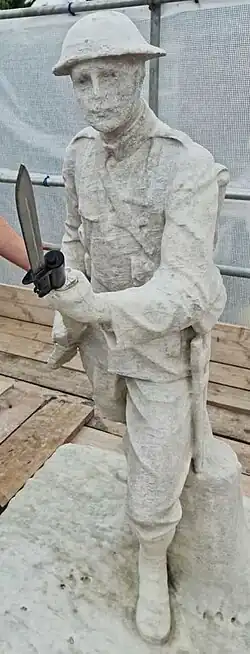 The statue was modelled from photographs of Stanley Harley, the first man from Brierley Hill awarded the Distinguished Conduct Medal, and made by George Brown and Sons of Kidderminster.[4]