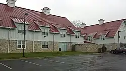 The Briggsdale Apartments are a built aspect of the Rebuilding Lives Program, a community effort to end chronic homelessness in Franklin County. Opening in March 2006 for occupancy, the apartment complex was developed and is owned and operated by the Community Housing Network. The construction cost under $4 million and took place from July 2005 to February 2006.[10] The project received large community support through funding from the Ohio Housing Finance Agency, HOME funds from the city of Columbus, Franklin County, and HUD. The apartments are supportive single room occupancy (SRO) units for individuals disabled by mental illness, afflicted by substance addiction, or have experienced a history of chronic homelessness. The complex consists of two buildings designed to look like farm residences in the spirit of the original Briggs farm.[11] The apartment complex is located at 1670 Harrisburg Pike, Columbus, Ohio. The location was selected because of its proximity to public transportation, convenience shopping and employment opportunities for the residents. The apartments include 35 SRO units, a community space, computer lab for resident use and offices for 24-hour staffing. The Community Housing Network works in conjunction with the Southeast, Inc. to provide the apartment residents with supportive services such as mental health and chemical dependency counseling and budgeting education.[12]