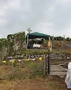 During the Penal times in Ireland, Catholics worshipped at a Mass Rock located at the start of Twelve Acre Lane in Coniamstown. The surrounding hills (e.g. Ballydargan windmill) served as natural lookouts for approaching patrols. This site became a place of worship after the old chapel had fallen into ruin.[22]