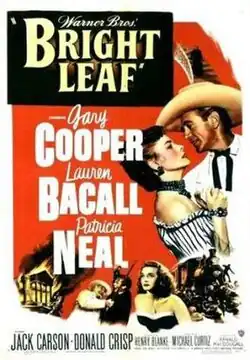 Bright Leaf is a 1950 American Drama Western film directed by Michael Curtiz and starring Gary Cooper, Lauren Bacall and Patricia Neal. It is adapted from the 1949 novel of the same name by Foster Fitz-Simons. The title comes from the type of tobacco grown in North Carolina after the American Civil War. According to Bright Leaves, a 2003 documentary film by Ross McElwee, the plot is loosely based on the rivalry of tobacco tycoons Washington Duke and John Harvey McElwee, the filmmaker's great-grandfather.