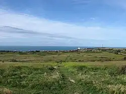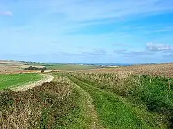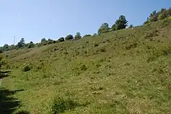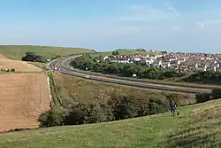 To the north of Mile Oak, on the other side of the A27, are a number of downland areas that are still in the Brighton and Hove area. These include the ancient chalk grassland slopes of Cockroost Hill, Cockroost Bottom and Mount Zion. They are all special areas because of the remarkable wildlife still surviving there, including rare downland flowers, orchids, butterflies and rare insects.[12] There is a lot of history on the slopes, including a large 4000 year old Bronze Age settlement, a possible 'henge' (as in Stonehenge), now lost under the A27 bypass, and evidence of Iron Age and Romano-British field systems.[13] To the north of the city boundary is Fulking parish. The final stretch of the Monarch's Way passes through Mile Oak and Porstlade. It is a 625-mile (1,006 km) long-distance footpath that runs from Worcester to Shoreham.